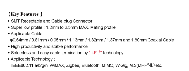 日本I-PEX公司是Micor Coaxial Connector领域的全球领导者,凭借其专利的“iFit Technology”,I-PEX MHF Series产品赢得了包括Apple、Samsung、Microsoft、Amazon等在内的全球顶尖公司的认可。